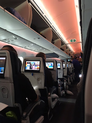 and of course, with a nine hour time difference it was now late morning. We liked the cute touches on our flight to Venice and I was happily in a window seat with Sue beside me in the aisle seat.